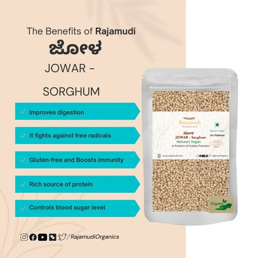 A Nutritious, Gluten-Free Grain for a Healthy Diet Rajamudi Organics presents Organic Jowar (Sorghum), a wholesome and highly nutritio...